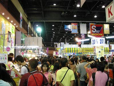 เราสองคนเดินดูหนังสือร้านโน้น ร้านนี้ อย่างเพลิดเพลิน ยิ่งเวลาผ่านไป ผมเริ่มอึดอัดกับผู้คนที่เข้ามาในงานมากขึ้น ๆ จนต้องรีบซื้อหนังสือที่ชอบมา 2-3 เล่ม แล้วก็รีบเดินออกจากส่วนที่แสดงหนังสือ ออกมาที่ร้านอาหาร