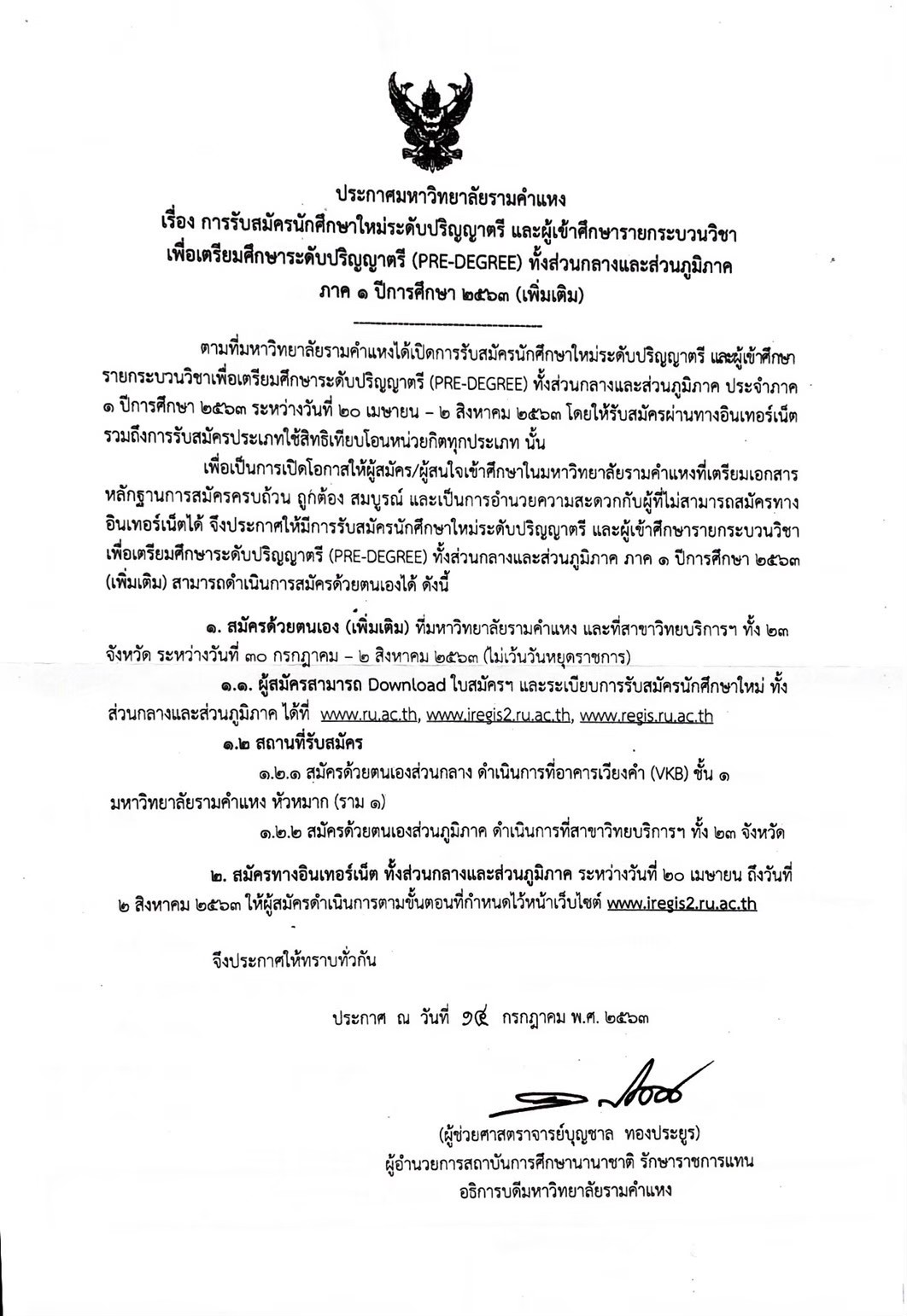 มหาวิทยาลัยรามคำแหงประกาศรับสมัครนักเรียนที่สนใจศึกษาต่อปริญญาตรีแบบๅPre-Degree สนใจอ่านรายละเอียดเพิ่มเติม