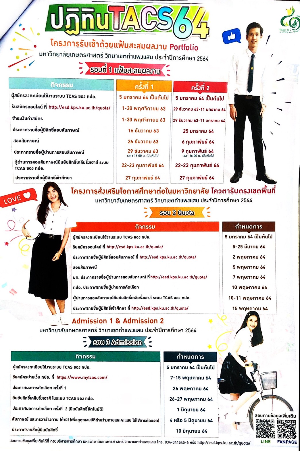 ด้วยคณะเกษตร กำแพงแสน มหาวิทยาลัยเกษตรศาสตร์ วิทยาเขตกำแพงแสน เปิดรับสมัครนักเรียนระดับชั้นมัธยมศึกษาปีที่ 6 เข้าศึกษาต่อ ในคณะเกษตร กำแพงแสน ปี 2564