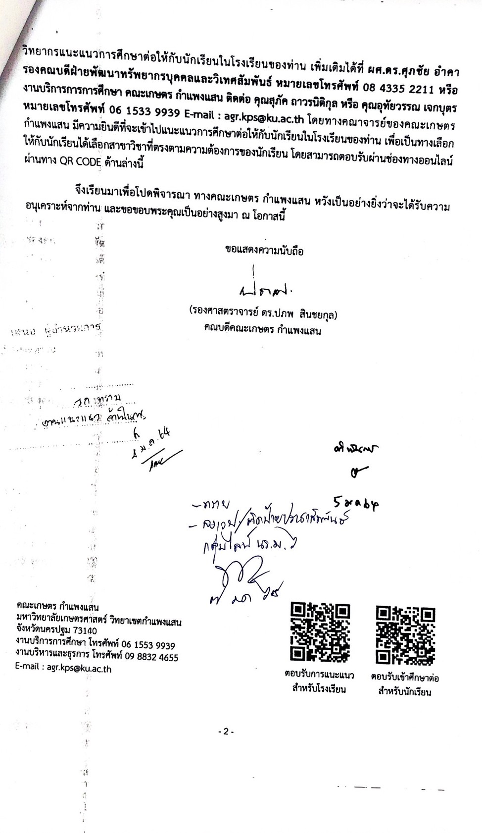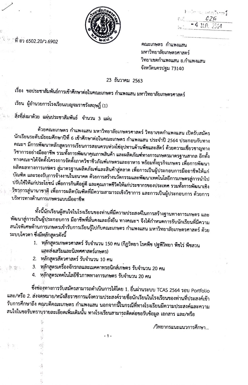 ขอประชามสัมพันธ์การเข้าศึกษาต่อในคณะเกษตร กำแพงแสน