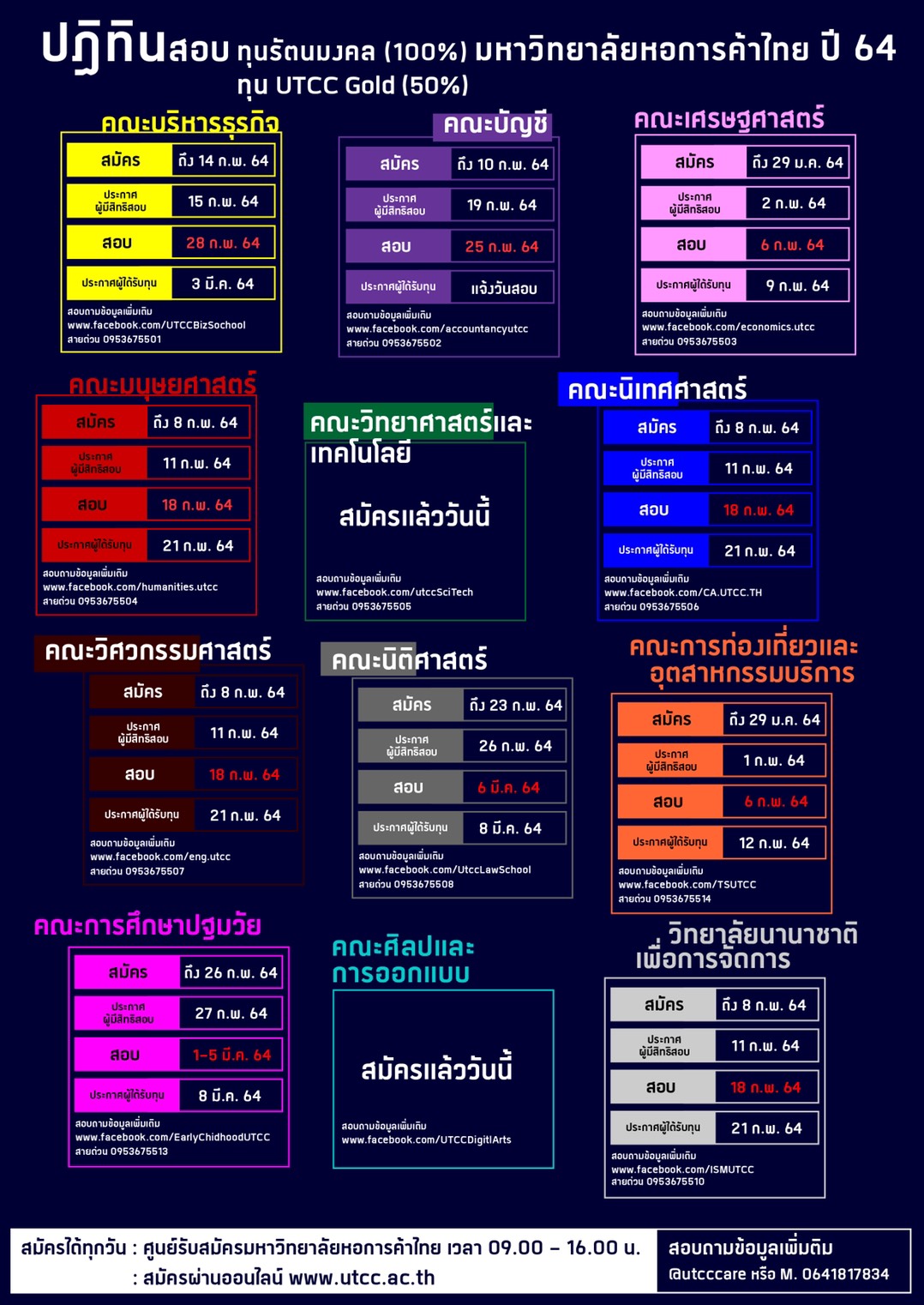 สำหรับปฏิทินสอบทุนการศึกษา มหาวิทยาลัยหอการค้าไทยประจำปี 2564