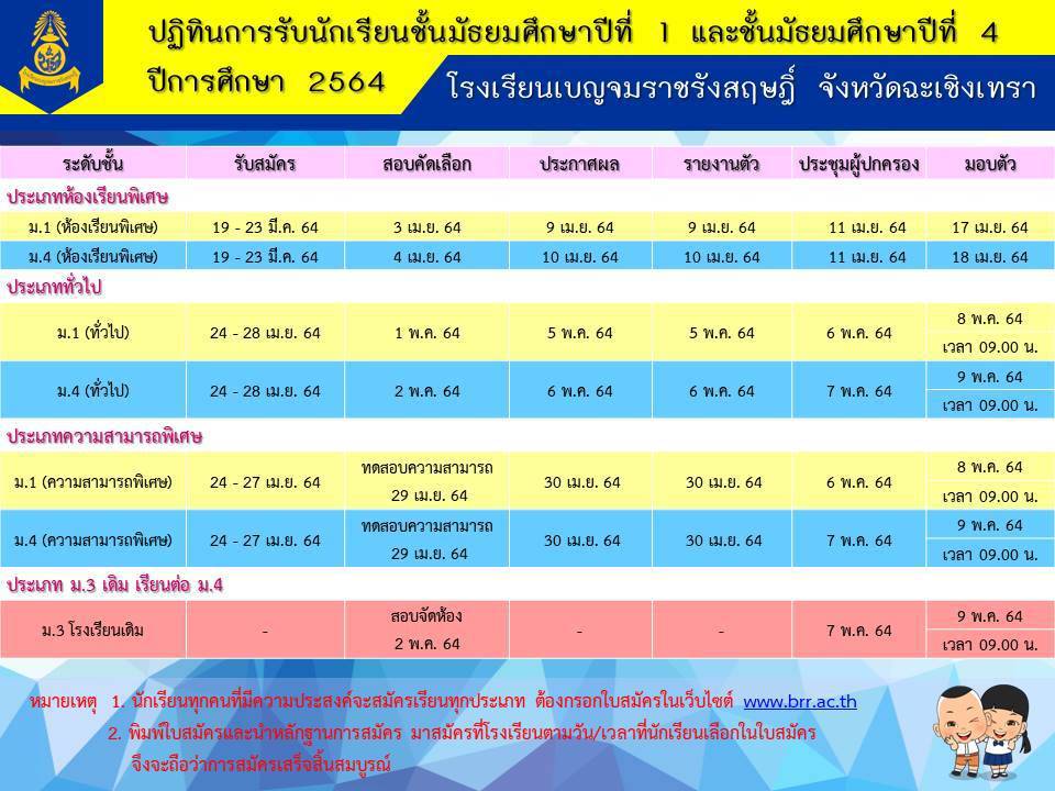 กำหนดการรับสมัครนักเรียนระดับชั้นมัธยมศึกษาปีที่ 1 และมัธยมศึกษาปีที่ 4 ปีการศึกษา 2564