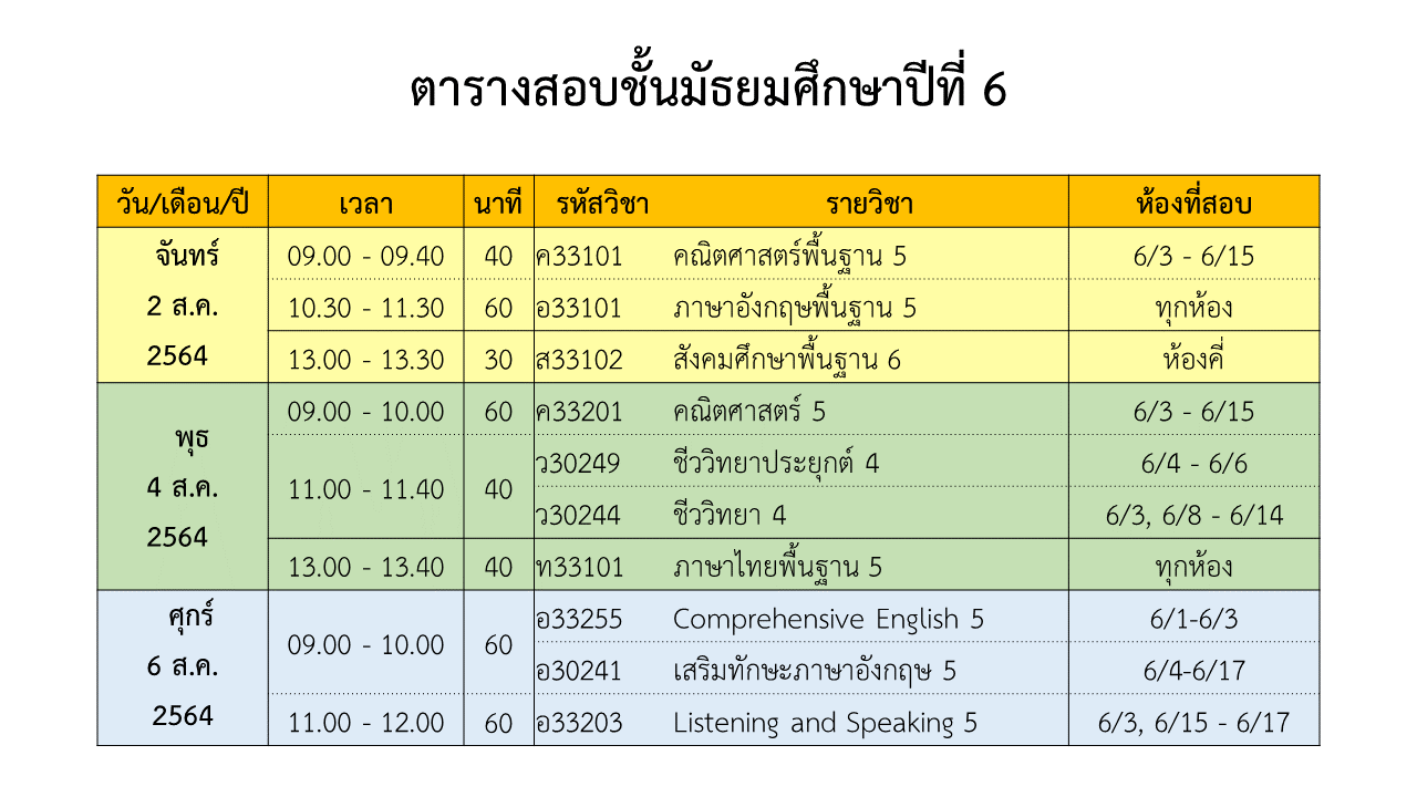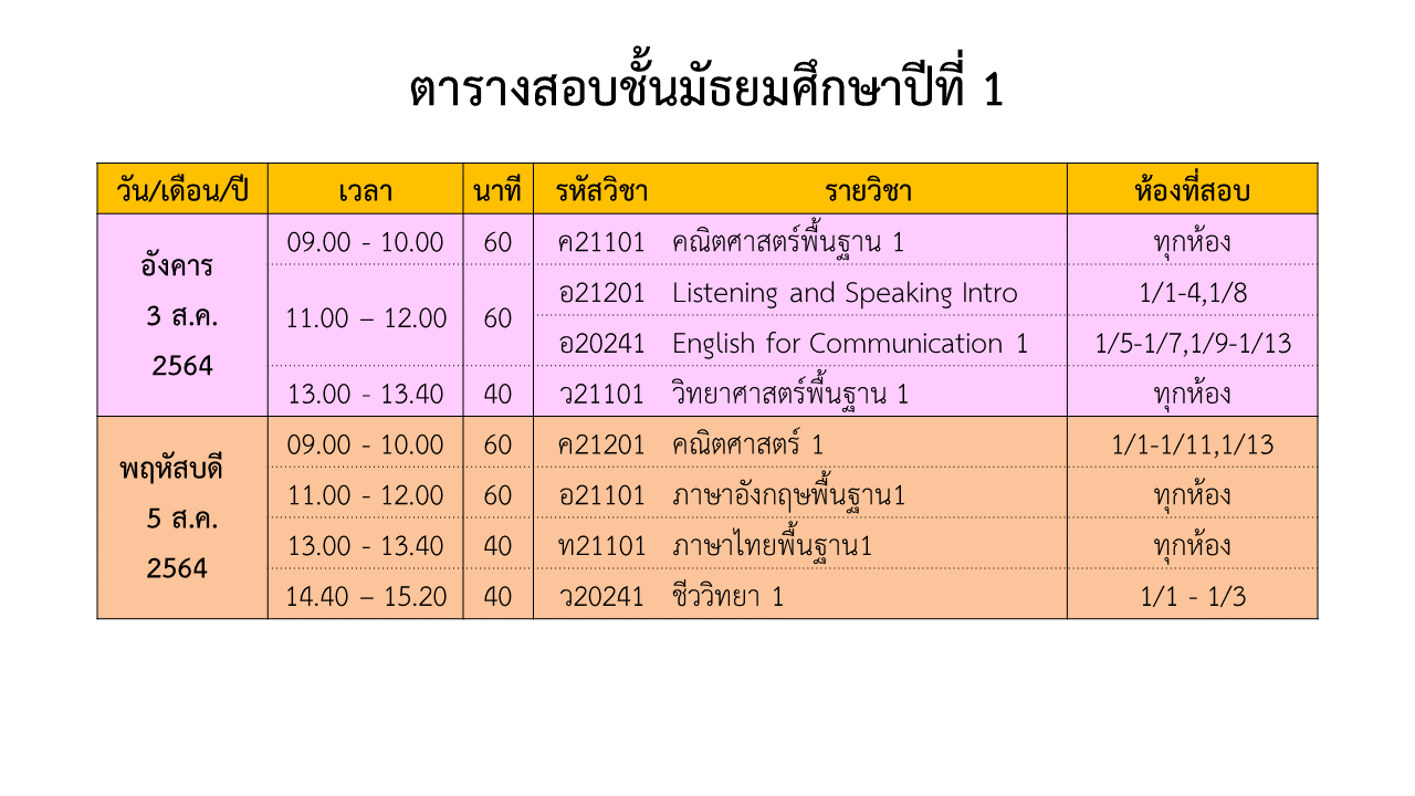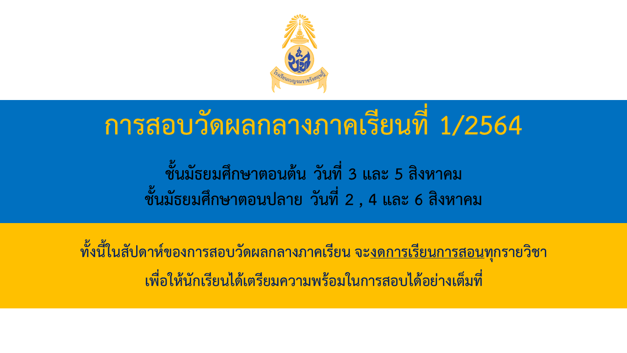 กำหนดการสอบวัดผลกลางภาคเรียนที่ 1/2564