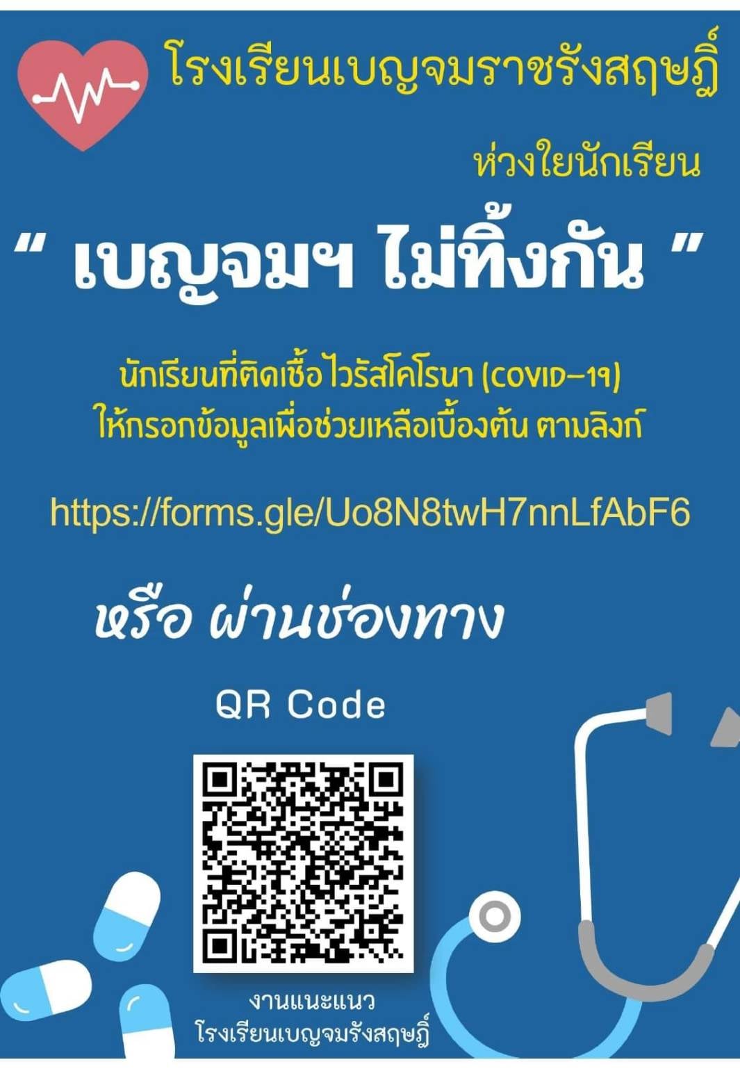 แจ้งเรื่องการรายงานข้อมูลนักเรียนที่ติดเชื้อไวรัสโคโรนา (COVID-19) ให้กรอกข้อมูลลงแบบฟอร์มจากการสแกน QR Code จากภาพด้านล่างเพื่อรับการช่วยเหลือเบื้องต้น