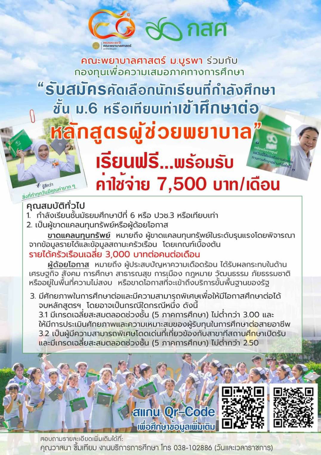 รับสมัครคัดเลือกนักเรียนที่กำลังศึกษา ชั้น ม.6 หรือเทียบเท่า ศึกษาต่อหลักสูตรพยาบาล