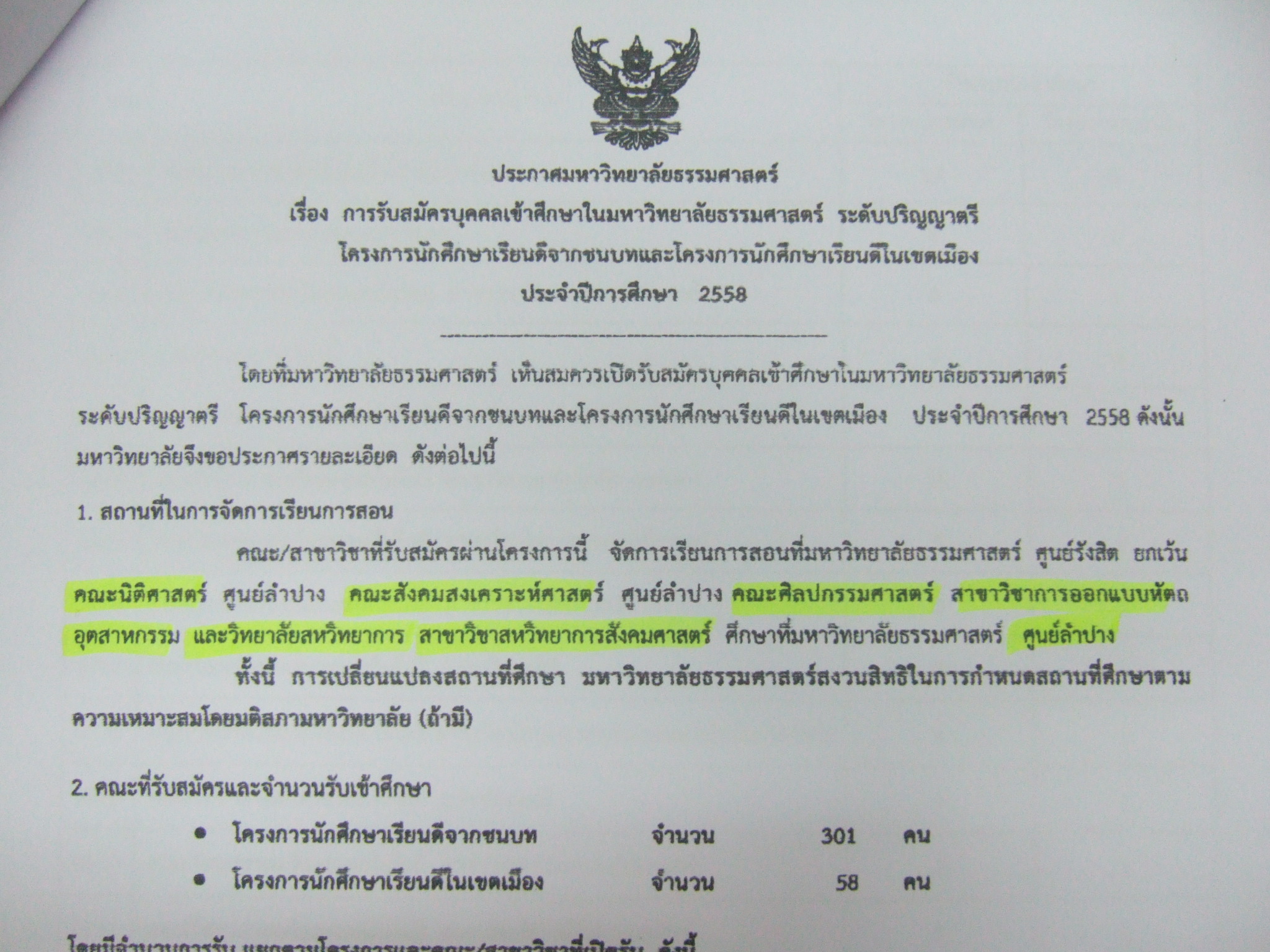 รับสมัครโครงการนักศึกษาเรียนดีจากชนบท ม.ธรรมศาตร์ ศูนย์รังสิต ระหว่างวันที่ 3พย-1ธค 57. นักเรียนที่สนใจติดต่ออ.ภัทรพงศ์ที่ห้องแนะแนว ตั้งแต่บัดนี้