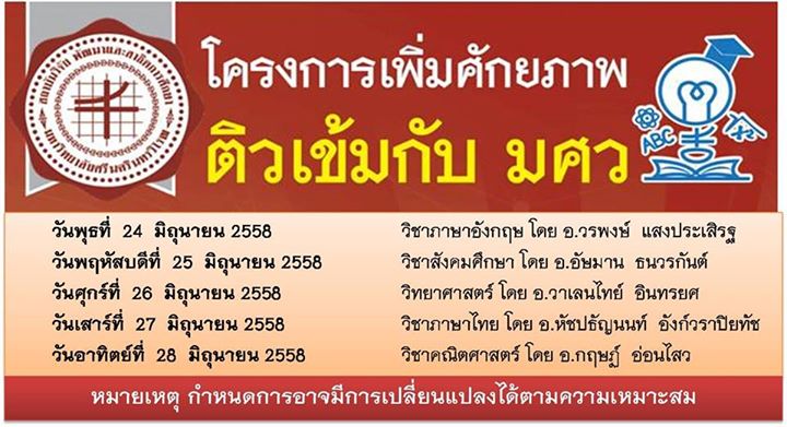 โครงการเพิ่มศักยภาพ ติวเข้มกับ มศว