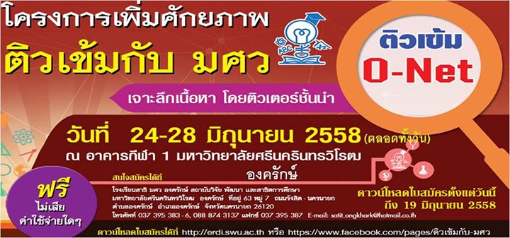ผู้สนใจเข้าร่วมโครงการเพิ่มศักยภาพ ติวเข้มกับ มศว