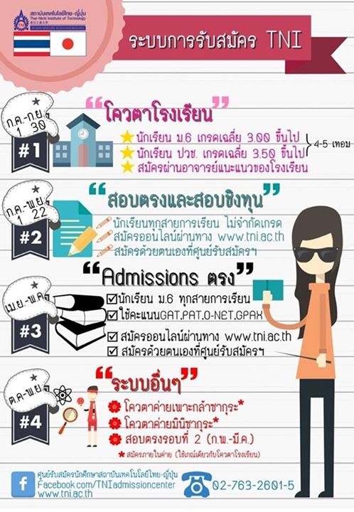 รายละเอียดเพิ่มเติม https://www.facebook.com/TNIadmissioncenter