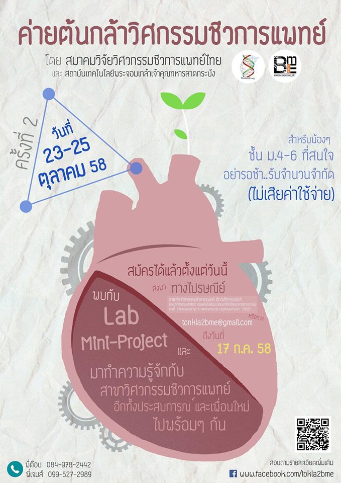 ค่ายต้นกล้าวิศวกรรมชีวการแพทย์ ครั้งที่ 2 สถาบันเทคโนโลยีพระจอมเกล้าเจ้าคุณทหารลาดกระบัง