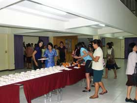 และเมื่อเวลา 11.00 น. ทั้งหมดได้ไปร่วมรับประทานอาหารที่โรงอาหารหลังนอก มีการแสดงสิ่งละอันพันละน้อยของนักเรียนให้ชขมด้วย..เสร็จแล้วคณุดูงานจึงเดินทางออกจากเบญจม์เมื่อเวลาประมาณ 13.00 น.