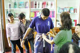 ในขณะเดียวกันเมื่อวันที่ 4 พ.ย. ที่ผ่านมานี้ มีการนัดหมายให้นักเรียนมาซ้อมเดิน และในช่วงบ่ายมีการซักซ้อมการแต่งตัวให้กับนักเรียนที่ร่วมเดินในขบวนแห่ทั้งหญิงและชาย มีคุณครูมาทำหน้าที่สาธิตการแต่งตัวให้นักเรียนดูเพื่อจะได้ช่วยตัวเองในการนำเสื้อผ้ามาแต่งในคืนวันที่ 6 นี้ได้บ้างจะได้ไม่เสียเวลารอการแต่งตัวให้จากคุณครูที่อาจจะมีจำนวนน้อย