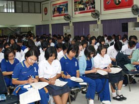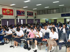 News วันนี้ (14 ธค. 54) ตั้งแต่เวลา 8.30 น. เป็นต้นไป บนห้องประชุม ชั้น 3 อาคารสมเด็จพระเทพฯ กลุ่มสาระฯภาษาต่างประเทศ ได้เชิญติวเตอร์ ครูพี่เมย์ มาติวภาษาอังกฤษให้กับนักเรียนชั้น ม.6 เพื่อเตรียมตัวเอาไว้สู้กับการสอบ GAT PAT ที่กำลังจะมาถึงในไม่กี่วันนี้ มันักเรียนชั้น ม.6 ประมาณ 90% เข้าร่วมกิจกรรมในครั้งนี้ ทั้งนี้มีครูในกลุ่มสาระฯภาาาต่างประเทศ มาให้การดูแลอย่างพร้อมเพรียง