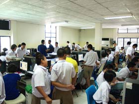 ห้องอินเตอร์เน็ตคราคร่ำไปด้วยนักเรียนหลายระดับ