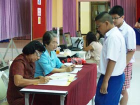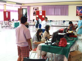 News วันนี้(18 มีนาคม 2555) เป็นวันที่สี่ของการเปิดรับสมัครนักเรียนเข้าเรียนห้องเรียนพิเศษทั้ง 2 ระดับ ซึ่งปรากฏว่ามีนักเรียนเดินทางมาสมัครในช่วงเช้าค่อนข้างมากกว่าเมื่อวานนี้ แต่เมื่อเวลาล่วงไปถึงบ่ายสองโมง ปรากฏว่ากรรมการรับสมัครต้องนั่งว่างเพราะแทบจะไม่มีใครเดินทางมาสมัครกันเลย ทำให้ยอดผู้สมัครในวันนี้สรุปได้เมื่อเวลา 14.30 น. มีจำนวนดังนี้