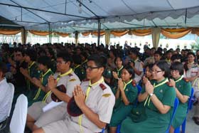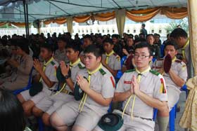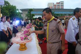 ในการนี้ ผู้อำนวยการโรงเรียนเบญจมฯ นายอำนาจ เดชสุภา พร้อมด้วยครูและนักเรียนจำนวนหนึ่งได้เดินทางมาร่วมพิธีสำคัญในวันนี้ด้วย รวมทั้งมีผู้แทนหน่วยราชการในจังหวัดฉะเชิงเทรา พร้อมด้วย ผู้แทนองค์กรปกครองส่วนท้องถิ่น ตลอดจน พสกนิกรทุกหมู่เหล่า จำนวนมาก เดินทางมาเข้าร่วมเป็นเกียรติในพิธี และพร้อมใจกันถวายความอาลัยส่งเสด็จ สมเด็จเจ้าฟ้าเพชรรัตนฯ สู่สวรรคาลัย