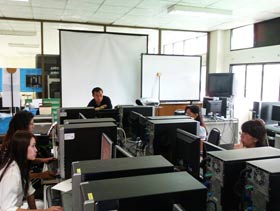 ระหว่างวันที่ 23-25 เมษายน 2555 ที่ผ่านมานี้ งานเทคโนโลยีเพื่อการศึกษา ได้ให้การอบรมการใช้โปรแกรม MOODLE แก่คุณครูกลุ่มสาระฯภาษาไทย และคณิตสาสตร์ จำนวน 6 คน ทั้งนี้เพื่อส่งเสริมให้ใช้โปรแกรมนี้เพื่อจัดการเรียนการสอนออนไลน์ โดยตั้งเป้าหมายให้ผู้เรียนทั้ง 6 คน สามารถใช้โปรแกรมได้ในระดับสามารถสร้างบทเรียน สร้างกิจกรรม ต่างๆ ทั้งเรื่องการใส่ใบความรู้ ใบกิจกรรมฝึกทักษะ กิจกรรมการบ้านออนไลน์ การทำธนาคารข้อสอบ ตลอดจนการจัดการข้อสอบเพื่อทดสอบออนไลน์ เป็นต้น
