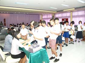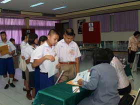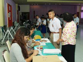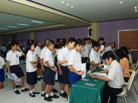 ภายหลังจากถึงเวลารับสมัครเมื่อเวลา 8.30 น. ครูเจ้าหน้าที่ได้จัดคิวให้นักเรียนขึ้นสมัครตามลำดับที่ห้องโสตทัศนศึกษา มีเจ้าหน้าที่เดินทางมาให้บริการเต็มจำนวน ทำให้ขั้นตอนต่างๆลื่นไหลไปตามลำดับ