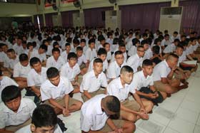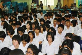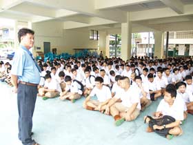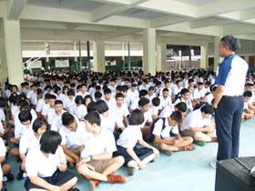 News วันนี้ 16 พ.ค. 55 เวลาทั้งภาคเช้าและบ่าย มีกิจกรรมปฐมนิเทศนักเรียนชั้น ม.5 และ ม.6 ตามลำดับ โดยมีผู้อำนวยการฯอำนาจ เดชสุภา เป็นประธานการปฐมนิเทศ ซึ่งในปีนี้เป็นปีที่ฝ่ายบริหารบุคคลเน้นย้ำในเรื่องนโยบายรักษาระเบียบวินัยและความประพฤติของนักเรียนทุกระดับ รายละเอียดนั้นรองฯเสน่ห์ ศุภอักษร และหัวหน้าระดับได้ชี้แจงให้นักเรียนทุกคนรับทราบแล้วเพื่อการปฏิบัติให้เป็นไปในทิศทางเดียวกัน จากการสังเกตการประชุมปฐมนิเทศ เห็นว่านักเรียนทุกระดับให้ความร่วมมือกับฝ่ายบริหารบุคคลเป็นอย่างดี