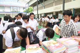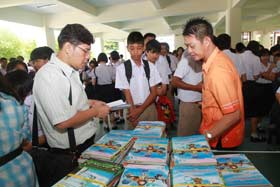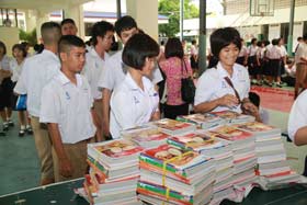 หลังจากการปฐมนิเทศเสร็จสิ้นก็มีการแจกหนังสือเรียนฟรีให้นักเรียนทุกคน