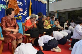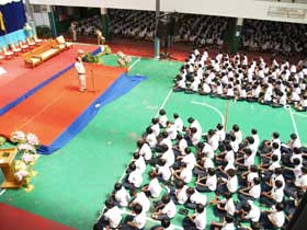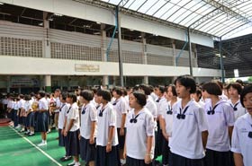News วันพฤหัสบดี ที่ 14 มิถุนายน 2555 เป็นวันทำพิธีไหว้ครูประจำปีของโรงเรียนต่างๆในประเทศไทย เช่นเดียวกับที่เบญจมราชรังสฤษฎิ์ มีการจัดพิธีไหว้ครูตามปฏิทินงานของโรงเรียน สำหรับในปีนี้พิธีการเป็นไปอย่างเรียบง่าย กระชับ แต่คงไว้ซึ่งความเป็นระเบียบเรียบร้อยสวยงาม สมศักดิ์ศรี เมื่อถึงเวลาตามกำหนดการ พิธีกรในงานก็ดำเนินกิจกรรมต่างๆไปตามลำดับเช่นเดียวกับที่ซักซ้อมกันเอาไว้เมื่อวานนี้ โดยมีผู้บริหาร ครูอาวุโส และครูประจำชั้นขึ้นรับไหว้และอำนวยพรแก่ศิษย์ ดังนั้นขั้นตอนการมอบพานดอกไม้แก่ครูจึงไม่ช้าเสียเวลา
