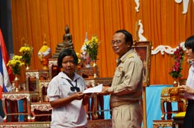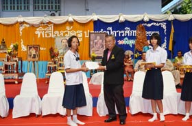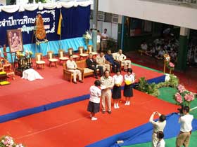 หลังจากที่พิธีมอบพานดอกไม้แก่ครูเสร็จแล้ว มีรายการมอบเกียรติบัตร และรางวัลแก่นักเรียนเรียนดี โดยอดีตผู้อำนวยการฯบุญส่ง ชิตตระกูล และ ผอ.อำนาจ เดชสุภา เป็นผู้มอบ จากนั้นผู้อำนวยการกล่าวให้โอวาทสั้นๆเป็นอันจบพิธีการไหว้ครู
