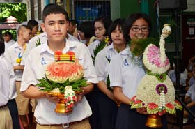 หลังพิธีไหว้ครูแล้ว มีการแสดงตัวเป็นพุทธมามกะของนักเรียนชั้น ม. 3และ ม.4