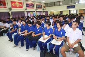 News เมื่อวันที่ 7 สิงหาคม 2555 เวลา 9.00 -16.00 น. ณ ห้องประชุมชั้น 3 อาคารสมเด็จพระเทพฯ สาระสุขศึกษาและพลศึกษา เบญจมฯ ร่วมกับกลุ่มงานเวชกรรมสังคม รพ.พุทธโสธร ร่วมกันจัดโครงการรณรงค์ป้องกันและแก้ไขปัญหาตั้งครรภ์ไม่พร้อมในวัยรุ่น เพื่อให้มีทักษะเกี่ยวกับสุขภาพอนามัยการเจริญพันธุ์ มีพฤติกรรมทางเพศที่ปลอดภัย และมีส่วนร่วมในการเฝ้าระวังตั้งครรภ์ไม่พร้อม โดยนายอำนาจ เดชสุภา ผู้อำนวยการโรงเรียนเป็นประธานพิธีเปิดโครงการ และมีวิทยากรจากสาธารณสุขจังหวัดฉะเชิงเทราให้ความรู้
