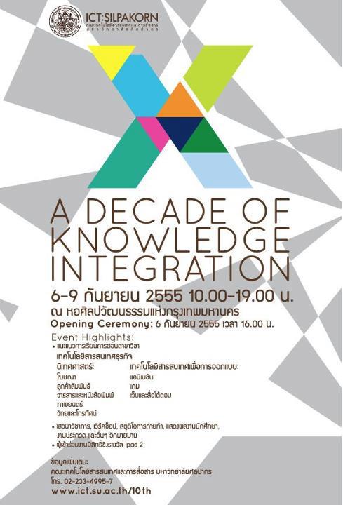 รายละเอียดกำหนดการจัดงานครบรอบ 10 ปี คณะเทคโนโลยีสารสนเทศและการสื่อการ มหาวิทยาลัยศิลปากร ระหว่างวันที่ 6-9 กันยายน 2555