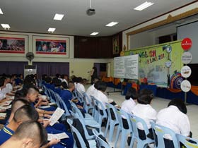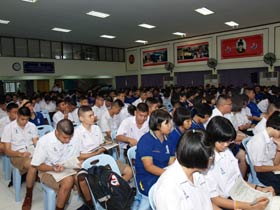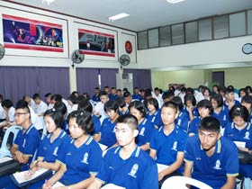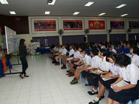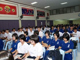 ภาษาต่างประเทศ ที่ห้องประชุมใหญ่ชั้น 3 อาคารสมเด็จพระเทพฯ เมื่อวันที่ 6 กันยายน 2555 เวลา 9.00-12.00 น. กลุ่มสาระฯภาษาต่างประเทศร่วมกับกลุ่มเผยแพร่กิจกรรมติวของบริษัทหนึ่ง จัดให้มีกิจกรรมแนะนำความรู้เกี่ยวกับการสอบ GAT/PAT วิชาภาษาอังกฤษให้กับนักเรียนชั้น ม.6 ทั้งนี้บริษัทได้ผนวกการนำเสนอผลิตภัณฑ์อื่นๆเข้ามาด้วย โดยขอใช้สถานที่บริเวณทางเดินมีหลังคา