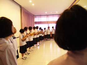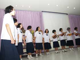ก่อนการพบครูที่ปรึกษานั้น นักเรียนทั้งหมดในห้องได้แสดงออกให้ผู้ปกครองได้ชมด้วยบนเวทีในห้องโสตฯ
