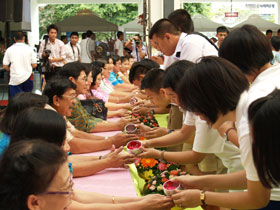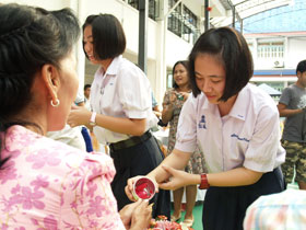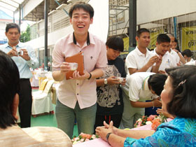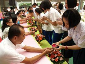 สำหรับภาพบรรยากาศในข่าวนี้จะเน้นไปที่การรดน้ำของพรของครูและนักเรียน