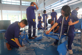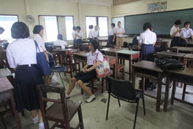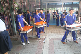 News เมื่อวันที่ 11 ธันวาคม 2555 ที่ผ่านมา ก่อนเข้าเรียน ฝ่ายบริหารงานบุคคลได้ให้นักเรียนนำโต๊ะเก้าอี้ชุดเก่าออกจากห้องเรียนเพื่อนำชุดใหม่ที่จัดซื้อเอาไว้ด้วยเงินกองทุนผ้าป่าเบญจมฯ 120 ปี เข้าไปใช้ ทำให้ห้องเรียนทุกห้องมีครุภัณฑ์โต๊ะเก้าอี้ใหม่เอี่ยมให้นักเรียนได้ใช้งานตามวัตถุประสงค์ของการทำบุญทอดผ้าป่าการศึกษาในปีนี้ ซึ่งได้เงินจากผู้มีจิตศรัทธาร่วมกันมากกว่า 5 ล้านบาท ซึ่งอุปกรณ์ชุดนี้จะถูกใช้ต่อไปรุ่นสู่รุ่นอีกหลายรุ่นจนกว่าจะหมดสภาพ