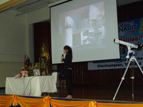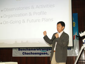 เปิดกิจกรรมตั้งแต่เวลา 8.00 น. โดยนายนิวัตต์ น้อยมณี ผู้อำนวยการ สพม.6(ฉช.-สป.) เป็นประธานในพิธี โดยมีนายอำนาจ เดชสุภา ผู้อำนวยการโรงเรียนเบญจมฯ กล่าวรายงานความเป็นมา หลังจากนั้นวิทยากรจาก NAOJ ได้ขึ้นบรรยายให้ความรู้แก่ครูในเรื่องดาราศาสตร์ระหว่างประเทศ