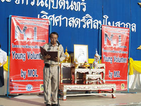 วันนี้(17 ธันวาคม 2555) ตั้งแต่เวลา 8.10 น. มีกิจกรรม ฝึกอบรม ตามโครงการฝึกอบรมอาสาสมัครรุ่นเยาวชน Young Volunteer by MOL ตามโครงการ "หนึ่งใจ..ช่วยเหลือผู้ประสบภัยและสู้ภัยพิบัติแห่งชาติ" ซึีงเป็นโครงการในพระดำริของทูลกระหม่อมหญิงอุบลรัตนราชกัญญา สิริวัฒนาพรรณวดี โดยทรงพระกรุณาแต่งตั้งให้คุณหญิงสุดารัตน์ เกยุราพันธ์ เป็นประธานกรรมการโครงการ มีจุดประสงค์เพื่อบรรเทาความเดือดร้อนให้แก่ประชาชนที่ประสบภัยพิบัติจากธรรมชาติ และอุบัติเหตุต่างๆที่เกิดขึ้นในทุกภูมิภาคของประเทศ