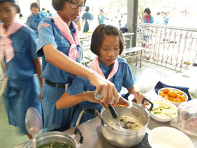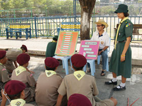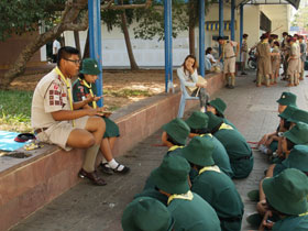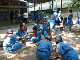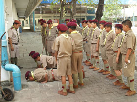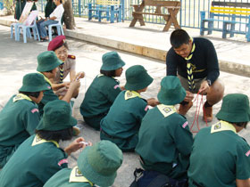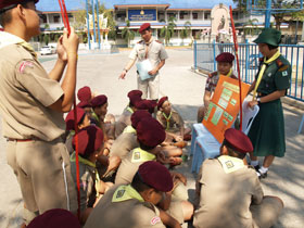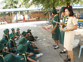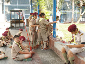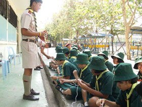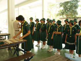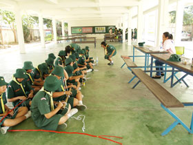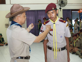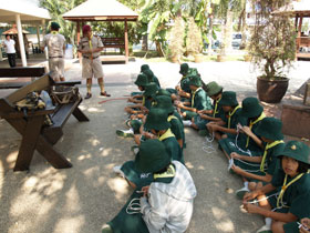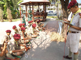 วันนี้(20 มกราคม 2556) เป็นวันที่สองของการปฏิบัติกิจกรรมค่ายลูกเสือ ม.1 ซึ่งภายหลังจากอาหารเช้าแล้ว ลูกเสือ เนตรนารี และยุวกาชาด ได้เริ่มกิจกรรมแรลลี่ 20 ฐาน เป็นการเรียนรู้วิชาการลูกเสือผ่านสื่อและการทดลองปฏิบัติจริง เช่นการใช้เข็มทิศ การผูกเงื่อนต่างๆ เป็นต้น กิจกรรมทั้งหมดนั้นอยู่ภายใต้การดูแลของครูและลูกเสือกองร้อยพิเศษ และผ่านมาในช่วงบ่ายมีพิธีประดับบ่าให้กับลูกเสือและเนตรนารีสามัญรุ่นใหญ่ ชั้น ม.1 ทุกคน ทั้งนี้ประธานในพิธีคือนายโกศล กิตตินิรันดร์กูล รองผู้อำนวยการฝ่ายบริหารทั่วไป1 และครูที่ทำหน้าที่ผู้บังคับบัญชาจำนวน 12 คน