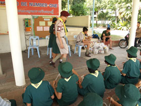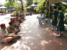 และเมื่อเวลา 16.00 น. ได้รวมกองเพื่อทำพิธีปิดกองที่บริเวณสนามตะกร้อข้างอาคารสมเด็จพระเทพฯ และเดินทางกลับบ้าน