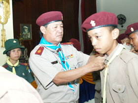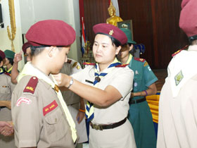 ภายหลังประดับบ่าให้กับลูกเสือและเนตรนารีสามัญรุ่นใหญ่แล้ว มีพิธีมอบสายยงยศให้กับลูกเสือ เนตรนารี กองร้อยพิเศษรุ่นใหม่อีกด้วย