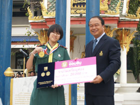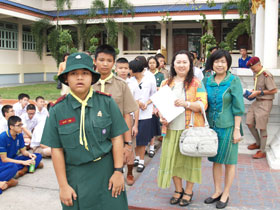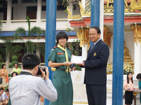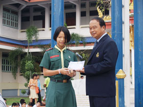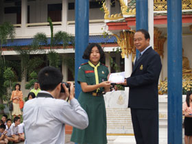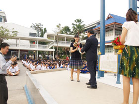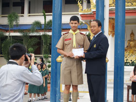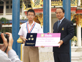 มอบช่อดอกไม่แสดงความยินดี และมอบรางวัลเด็กเก่งคณิตศาสตร์