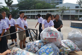 News เมื่อวันที่ 29 มกราคม 2556 เวลาประมาณ 15.00 น. ที่ผ่านมา กิจกรรมห้องเรียนสีเขียวโรงเรียนเบญจมราชรังสฤษฎิ์ ได้นำกล่องเครื่องดื่มซึ่งรวบรวมเอาไว้ได้จำนวนมากถึง 23,000 กล่อง มอบให้กับโครงการหลังคาเขียว ในมูลนิธิเพื่อนพึ่ง(ภาฯ)ยามยาก เพื่อนำไปผลิตเป็นแผ่นกระเบื้องมุงหลังคาให้กับชุมชน ซึ่งก่อนหน้านี้กลุ่มงานห้องเรียนสีเขียวได้ทำการรวบรวมกล่องเครื่องดื่มและส่งมอบให้กับมูลนิธิไปแล้วครั้งหนึ่งเมื่อวันที่ 29 พฤศจิกายน 2555 จำนวน 8,730 กล่อง