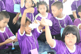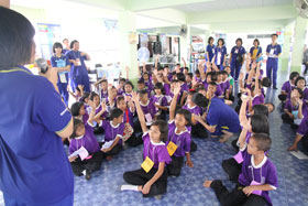 Newsระหว่างวันที่ 8-10 มีนาคม 2556 นี้ นักเรียนชั้น ม.6/2 ได้ทำโครงการค่ายอาสาสอนน้องที่โรงเรียนวัดบึงกระจับ อ.พนมสารคาม ฉะเชิงเทรา เพื่อนำกิจกรรมการเรียนรู้ไปให้น้องระดับชั้น ป.1-ป.6 ซึ่ง BRR NEWS เข้าเยี่ยมและสังเกตการณ์ เมื่อวันที่ 9 มีนาคม 2556 เวลา 11.30 น. พบว่า พี่ๆ ม.6 ทุกคนกระตือรือร้นที่จะนำกิจกรรมทั้งกิจกรรมนันทนาการ กิจกรรมวิชาการ และกิจกรรมฝึกทักษะต่างๆ ซึ่งน้องๆจากโรงเรียนวัดบึงกระจับก็มาร่วมเรียนรู้กันอย่างพร้อมเพรียงด้วยการสนับสนุนของผู้บริหารโรงเรียนและชุมชน คาดว่าโครงการนี้จะประสบความสำเร็จตามเป้าหมายที่วางไว้