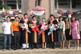News วันนี้ได้รับทราบข่าวดีจากคุณครู 4 ท่าน ซึ่งได้รับเลือกจากโครงการ SP2 ยกระดับครูทั้งระบบของ สพฐ. (ไทยเข้มแข็ง) เป็นครูแกนนำของกลุ่มสาระและได้รับทุนให้ได้เข้าเรียนในสาขาที่ตนเองสอนระดับปริญญาโท ในมหาวิทยาลัยรามคำแหง หลังจากที่อุตส่าห์ตั้งใจเรียนในวันเสาร์อาทิตย์ เป็นเวลากว่า 2 ปี ทั้ง 4 ท่านก็จบการศึกษา ได้รับพราชทานปริญญามหาบัณฑิตมาหมาดๆ ทั้ง 4 ท่านได้แก่ ครูเกียรติศักดิ์ มั่นจิตร วิชาเอกการสอนคณิตศาสตร์ ครูยงยุทธ์ มานะประดิษฐ์ วิชาเอกการสอนวิทยาศาสตร์ ครู พีรสุต พรหมสุวรรณ วิชาเอกการสอนภาษาอังกฤษ และครูสุพัฒนา จ้อยเจริญ วิชาเอกการสอนคณิตศาสตร์ ทั้งหมดเริ่มต้นเรียนเมื่อวันที่ 16 ตุลาคม 2553 จบการศึกษาเมื่อวันที่ 12 พฤศจิกายน 2555