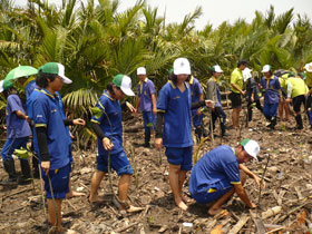 หลังจากพิธิเปิดโครงการโดย นายเริงศักดิ์ มหาวินิจฉัยมนตรี ผู้ว่าราชการจังหวัดฉะเชิงเทรา แล้ว ทั้งหมดได้ข้ามฟากไปยังเกาะป่าชายเลนเพื่อร่วมกิจกรรมปลูกป่า