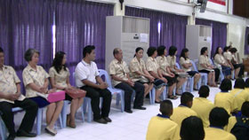 นายอำนาจ เดชสุภา ผู้อำนวยการโรงเรียน เป็นประธานเปิดกิจกรรม โดยมีคณะผู้บริหาร และคณะครูประจำชั้น ม.1 เข้าร่วมพิธีอย่างพร้อมเพรียง