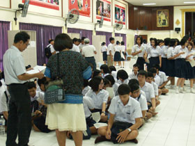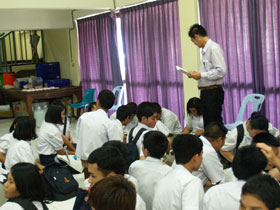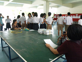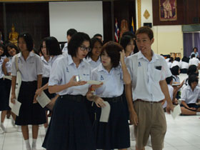 สำหรับในช่วงบ่าย มีนักเรียนชั้น ม.6 เดินทางมารอเข้ารับปฐมนิเทศตั้งแต่เช้า และเมื่อถึงเวลา 13.00น. ทั้งหมดเข้าห้องประชุมชั้น 3 อาคารสมเด็จพระเทพฯ รับฟังปฐมนิเทศจากผู้อำนวยการและรองฯ รวมทั้งหัวหน้าระดับ จากนั้นแจกตารางเรียนให้กับทุกคน แต่หนังสือเรียนยังไม่ได้รับเนื่องจากจัดแยกไม่เสร็จ ต้องมารับในวันเปิดเทอม