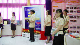News วันนี้(17 ก.ค. 56) เวลา 10.30 น. โรงเรียนของเราโดยผู้อำนวยการอำนาจ เดชสุภา พร้อมด้วยฝ่ายบริหาร หัวหน้างาน และนักเรียน ให้การต้อนรับคณะผู้ตรวจราชการกระทรวงศึกษาธิการนายกิตติรัตน์ มังคละคีรี และ นายธวัช ชลารักษ์ ซึ่งเดินทางมาเยี่ยมและพูดคุยกับฝ่ายบริหาร ในการนี้ กลุ่มสาระฯและงานต่างๆทุกฝ่ายได้จัดนิทรรศการเพื่อต้อนรับคณะผู้ตรวจฯอย่างเต็มที่ หลังจากที่คณะผู้ตรวจฯเดินทางมาถึงได้สักการะพระบรมรูปรัชกาลที่ 5 แล้ว ได้ร่วมหล่อเทียนจำนำพรรษา จากนั้นเข้าห้องโสตทัศนศึกษารับฟังบรรยายสรุป กลุ่มงานศิลปะได้จัดคณะนักร้องประสานเสียงมาแสดงให้ชม จากนั้นชมวิดีทัศน์บรรยาสรุป เสร็จแล้วผู้ตรวจฯได้กล่าวถึงเจตนาถึงการมาเยี่ยมโรงเรียน เสร็จแล้วผู้อำนวยการอำนาจ เดชสุภา ได้นำชมนิทรรศการ จากนั้นจึงได้ไปร่วมรับประทานอาหารกลางวันที่ห้องชมรมทูบีนัมเบอร์วัน