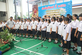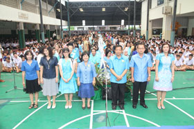 News เมื่อวันที่ 9 สิงหาคม 2556 โรงเรียนของเราจัดกิจกรรมวันแม่แห่งชาติขึ้นที่สนามในร่มระหว่างอาคารสมเด็จพระเทพฯและอาคารพลศึกษา กิจกรรมในวันดังกล่าว เริ่มด้วยการทำบุญใส่บาตรข้าวสารอาหารแห้งแก่พระภิกษุ 9 รูป เพื่ออุทิศเป็นพระราชกุศลถวายแด่สมเด็จพระนางเจ้าพระบรมราชินีนาถฯ เนื่องในวันเฉลิมพระชนม์พรรษา 81 พรรษาในวันที่ 12 สิงหาคม 2556 นี้ จากนั้นได้ร่วมจัดพิธีถวายพระพรต่อหน้าพระบรมฉายาสาทิสลักษณ์ของพระองค์ท่านบนเวทีชั่วคราวสนามที่จัดกิจกรรม โดยนายอำนาจ เดชสุภา ผู้อำนวยการโรงเรียนเป็นประธานในพิธี เป็นผู้อ่านคำกล่าวถวายพระพรชัยมงคล
