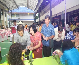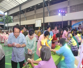 เมื่อทุกคนรดน้ำขอพรเสร็จแล้ว ขบวนแห่บายศรีเดินเข้ามาและมีการรำบายศรีเพื่อความเป็นการคารวะต่อบรรดาผู้เกษียณ จากนั้นการแสดงและการขับร้องเพลงก็ทยอยนำเสนอต่อผู้ร่วมงาน สลับด้วยการมอบของที่ระลึกแก่ผู้เกษียณจากผู้บริหาร ครูในกลุ่มสาระ และกรรมการสมาคมศิษย์เก่าฯ และสมาคมผู้ปกครองและครูฯ