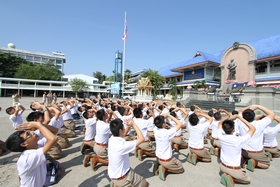 ภายหลังจากร่วมพิธีในส่วนจังหวัดแล้ว ครูนักเรียนเดินทางกลับมาที่โรงเรียนอีกครั้ง เพื่อประกอบพิธีถวายพวงมาลาต่อหน้าพระบรมรูปรัชกาลที่ 5 ที่ประดิษฐานอยู่สนามหน้าโรงเรียน เสร็จพิธีแล้วต่างแยกย้ายกันกลับบ้าน