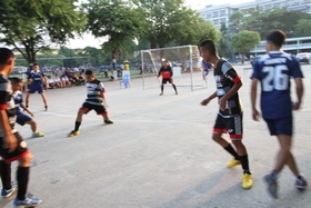 News วันนี้ (4 พ.ย.56) BRR NEWS เลาะขอบสนามฟุตซอลเพื่อเก็บภาพการแข่งขันระหว่างสีต่างๆมาฝาก การแข่งขันที่เห็นกันหลังจากเลิกเรียนแล้วในวันนี้คือบรรยากาศการเริ่มแข่งขันหาผู้ชนะเพื่อไปชิงชัยกันในวันกีฬาสี หรือกีฬาภายในของเบญจมฯ ซึ่งจะมีขึ้นในไม่กี่สิบวันข้างหน้านี้ บรรยากาศอย่างนี้พี่ๆที่จบไปแล้วคงพอจะมองเห็นความสนุกสนานของน้องๆได้ เพราะงานกีฬาสีที่พี่ๆทำมานั้น จะมีน้องๆเจริญรอยตาม ต่างกันตรงที่อาจจะมีความคิดสร้างสรรค์ใหม่ๆเพิ่มเติมเข้ามาเท่านั้นเอง